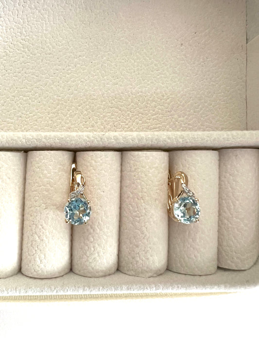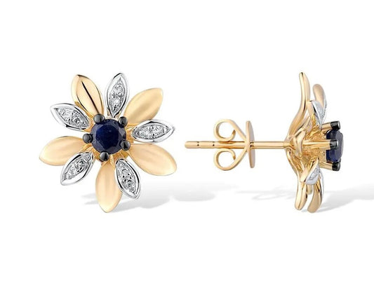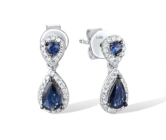 Isabel Aritos de Gotita en Oro Amarillo de 14k, Zafiros y Diamantes Naturales