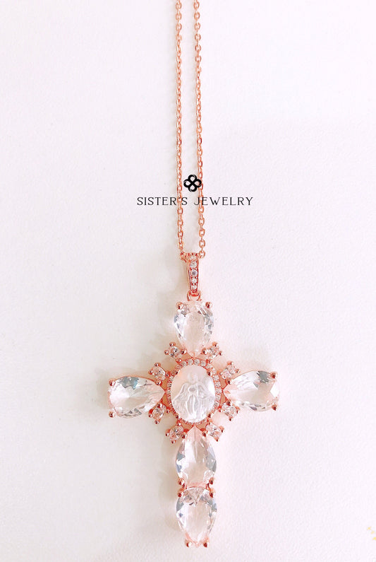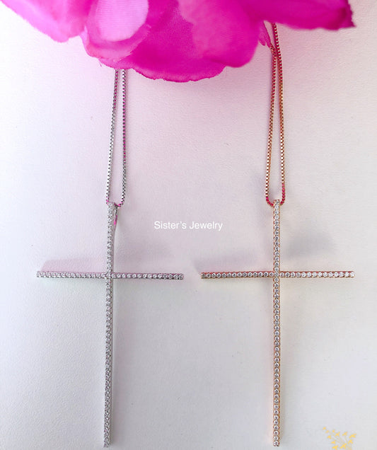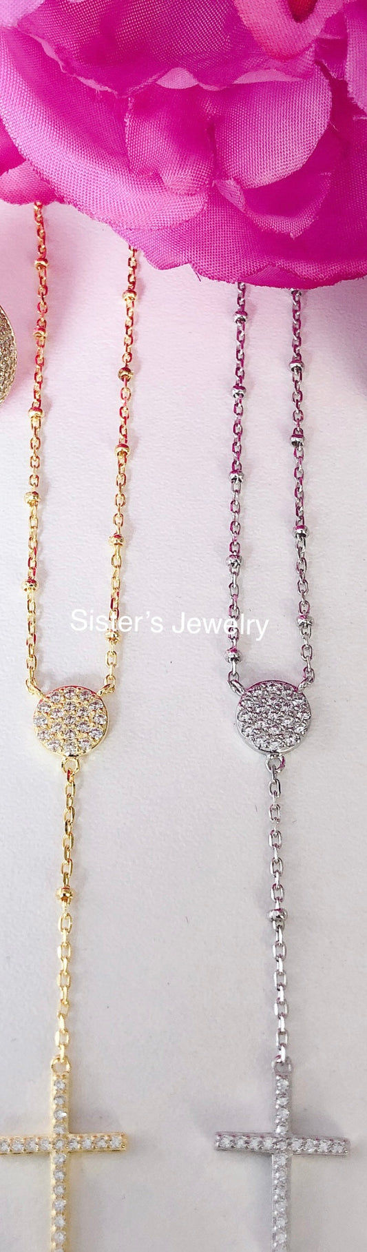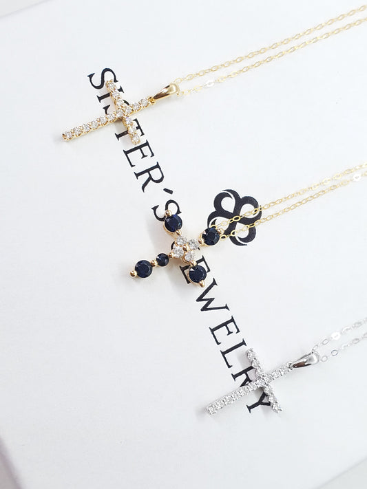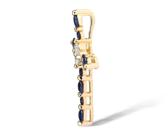 Dije de Cruz de Zafiros Blancos y Azules y Oro de 14k