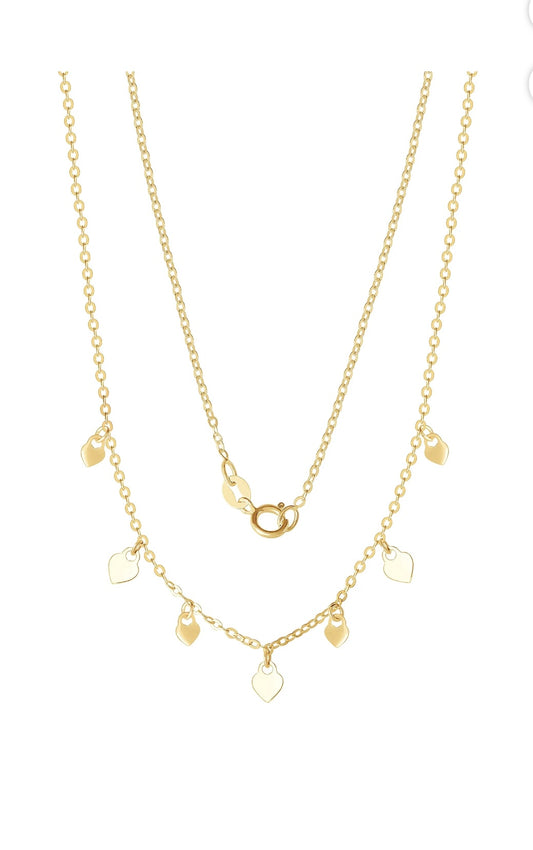 Cadena de oro 10k con dijes de Corazones Mom y Love