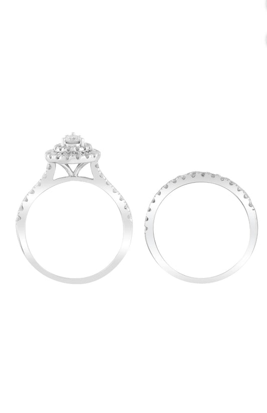 Juego de anillos de matrimonio en oro blanco de 10k y diamantes naturales TALLA 7