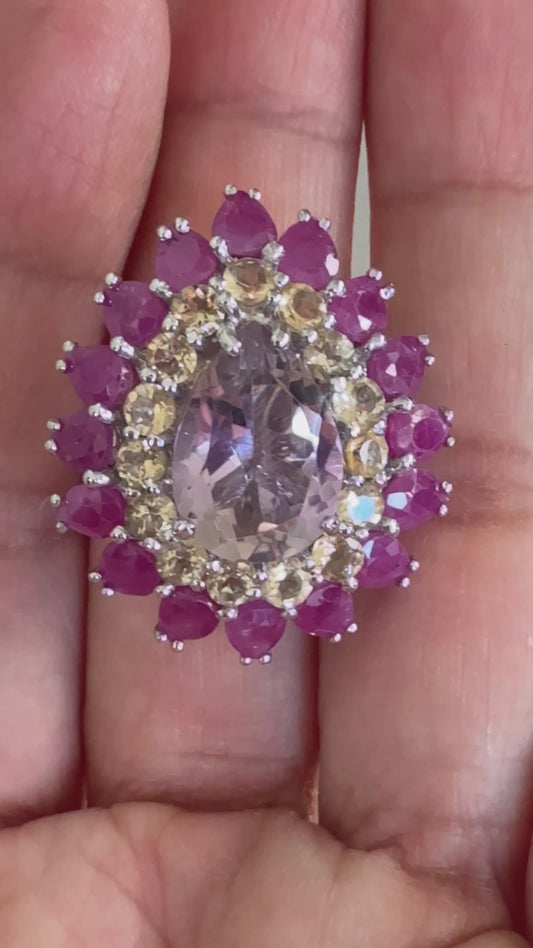 Anillo talla 7, plata925 con rubíes, citrinas y amatista natural