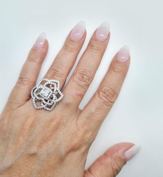 Jenni Anillo Plata 925 con Baño de Oro en Forma de Flor