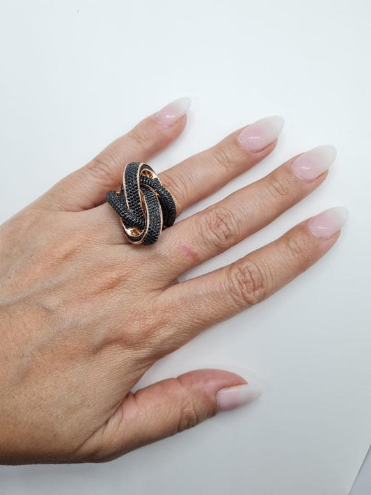 Mikaela Anillo en Plata 925 con Baño de oro Maxi en Forma de Nudo, Micropave