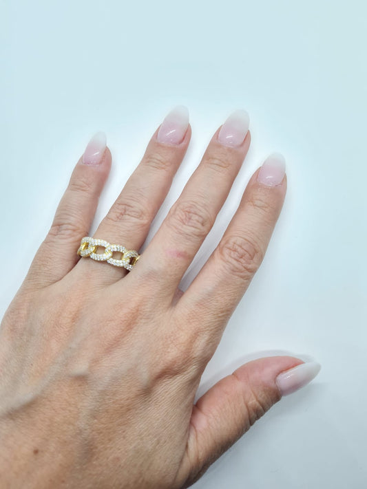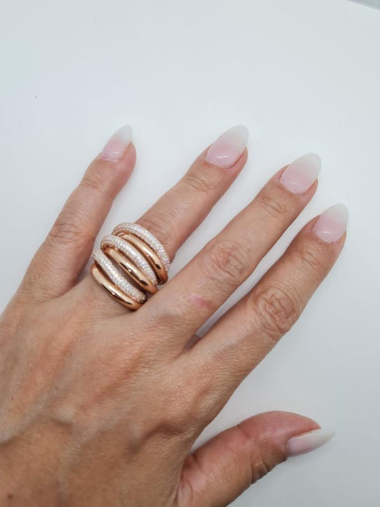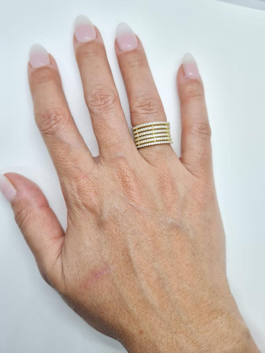 Estella Anillo de Plata 925 con Baño de Oro Maxi 6 Líneas entrelazadas
