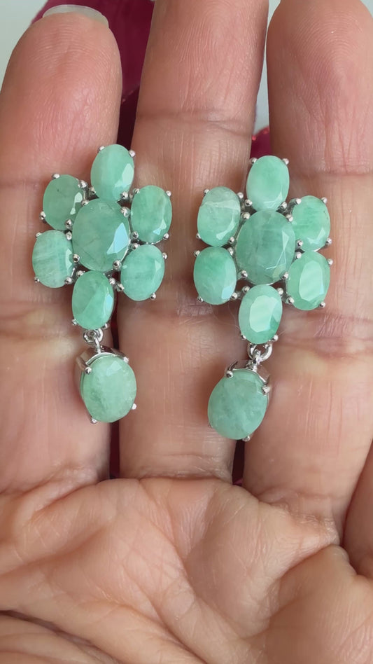Aretes Largos, plata925, Esmeraldas y Rubíes Cabochon Naturales