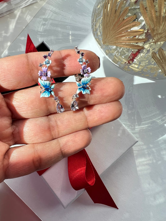 Aritos EarCrawler con Detalles de Flores y Mariposas Pintadas a Mano, Plata925