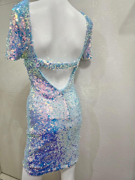 Vestido de Lentejuela negro, corto estilo burbuja, talla M