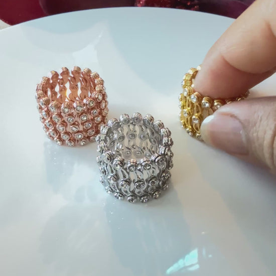Este anillo doble uso brinda versatilidad a tu estilo. Puedes usarlo como anillo o pulsera, gracias a su diseño único. Hecho de plata925 con un elegante baño de oro de 14k. Añade un toque sofisticado a cualquier look con este accesorio multifuncional. ¡Dos por el precio de uno!