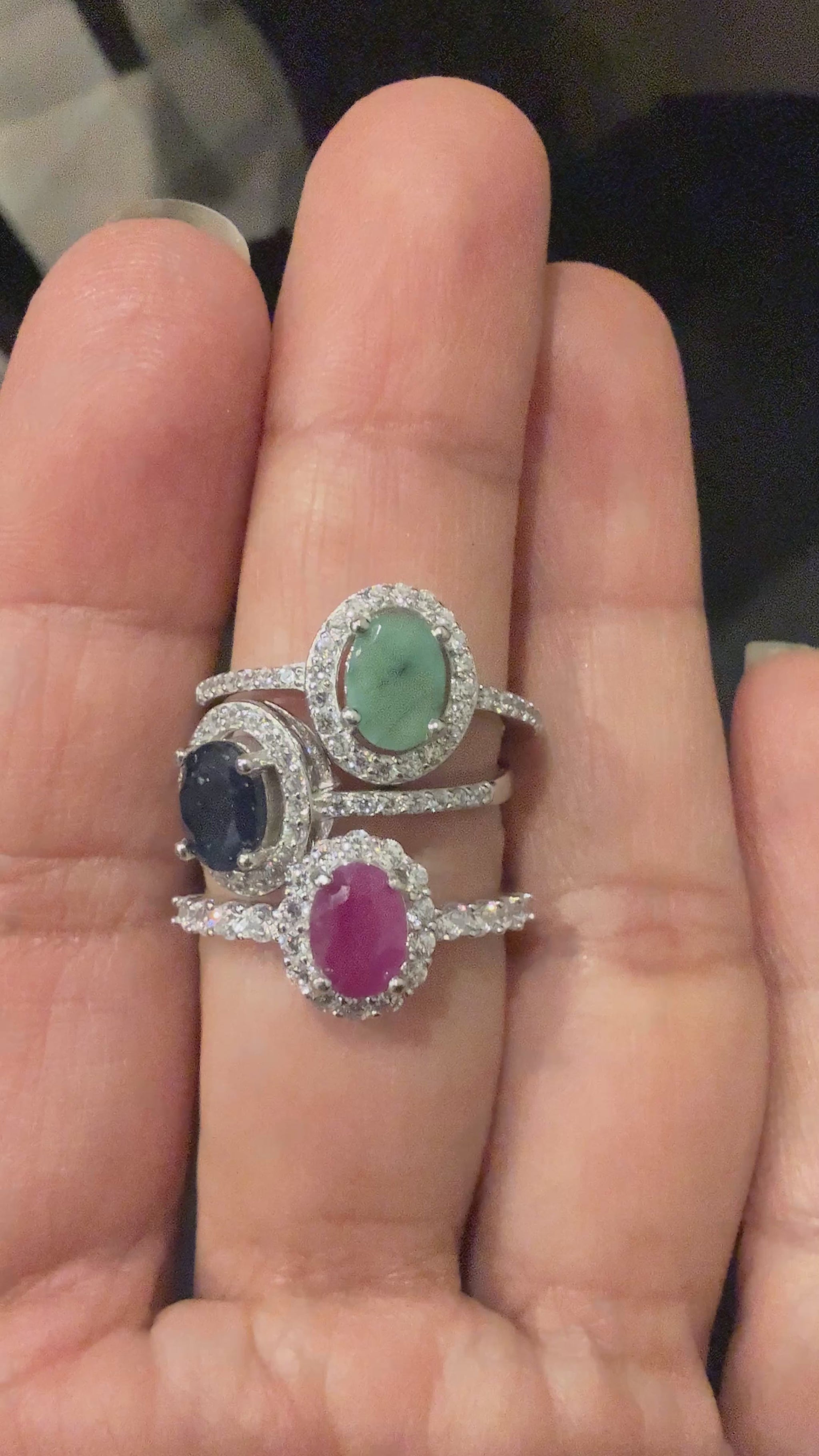 Anillo en plata925 con esmeralda-rubie-zafiro naturales