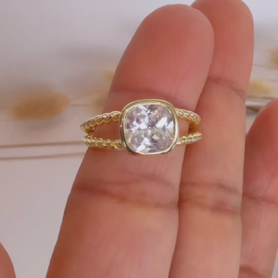 Anillo plata925 con Baño de Oro y Zircon Cuadrado, Talla 8