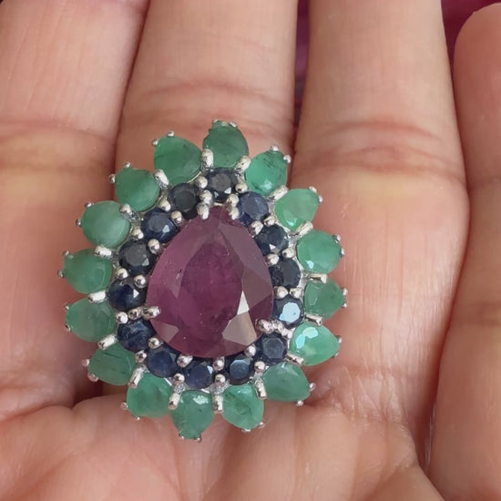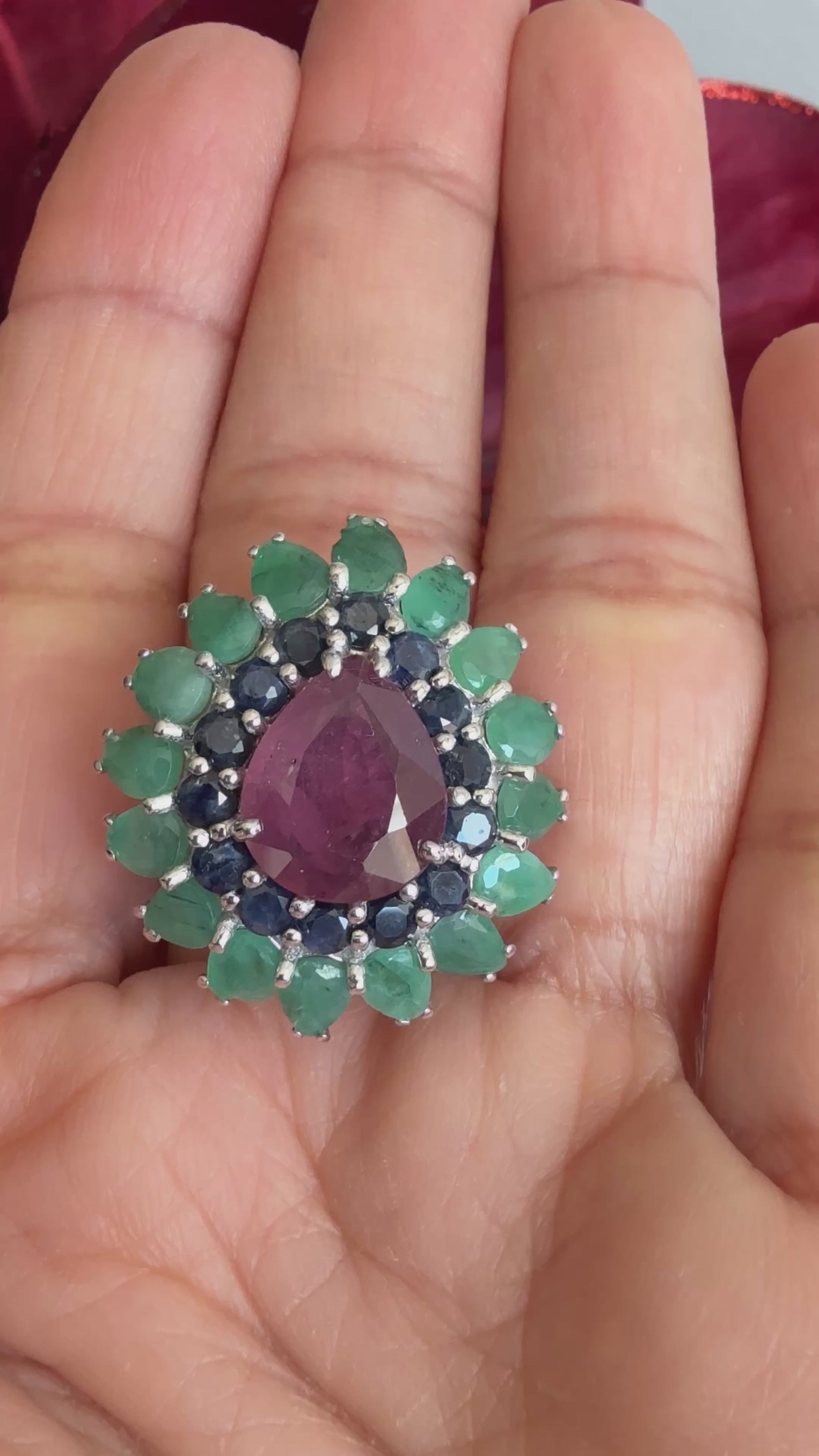 Anillo talla 7 en plata925 con esmeraldas rubie y zafiros naturales