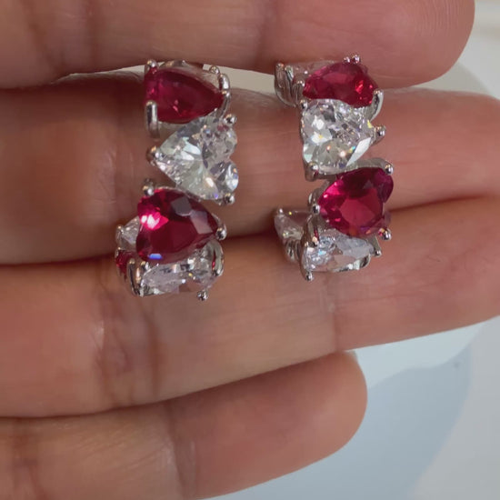 Argollas con Zircones en forma de corazón, plata925