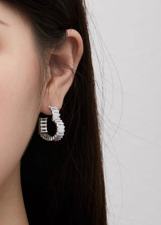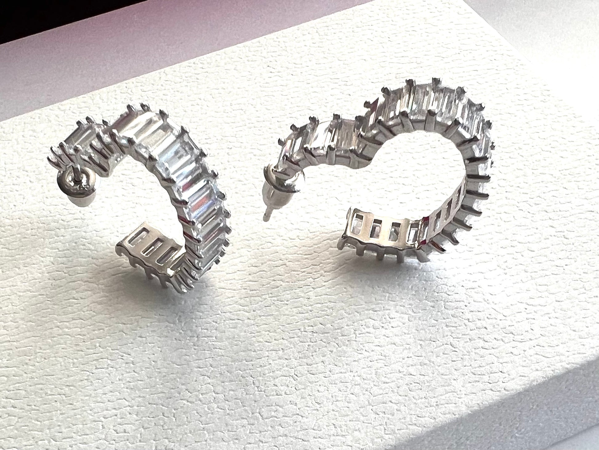 Espectaculares argollas en forma de corazón en plata925 con zircones baguette.