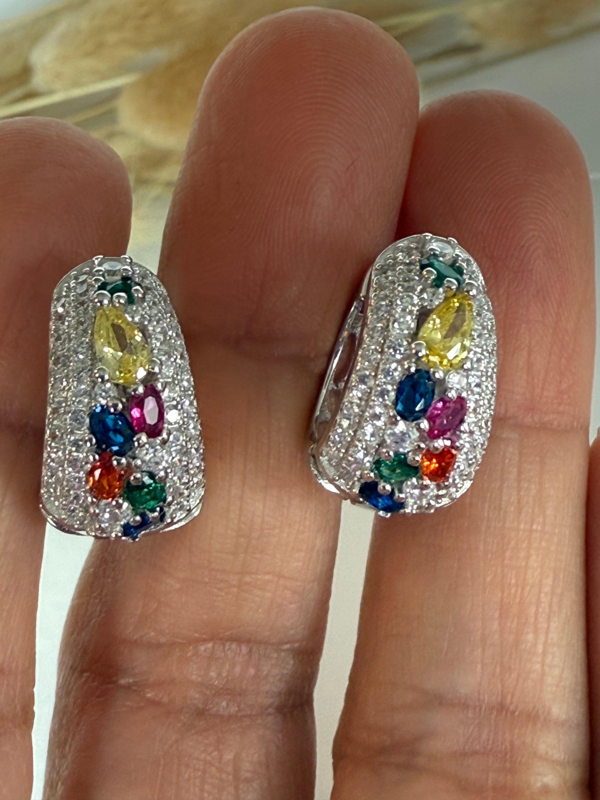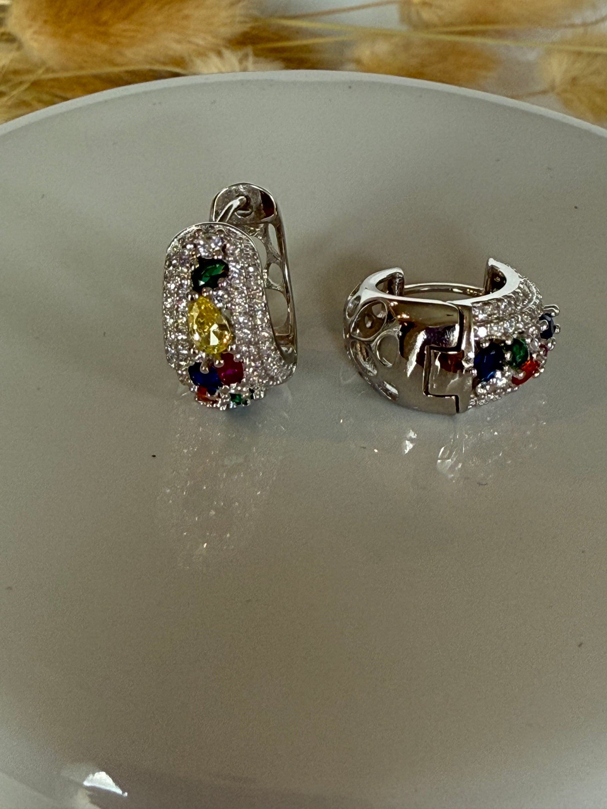 Estas preciosas argollas pequeñas están hechas con plata de alta calidad y decoradas con zircones multicolores brillantes. Son perfectas para añadir un toque de elegancia y estilo a cualquier atuendo. Además, gracias a su tamaño pequeño, son cómodas de llevar y fáciles de combinar. ¡Lucirás linda y sofisticada con estas argollas!