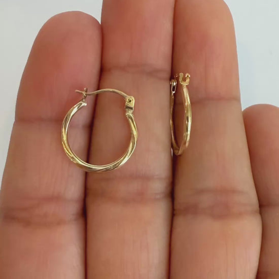 Estas argollas pequeñas twisted en oro de 14k combinan un diseño sofisticado con la durabilidad del oro puro. Su textura en espiral añade un toque moderno y elegante, ideal para uso diario o ocasiones especiales. La calidad del oro de 14 quilates garantiza resistencia y brillo prolongado, haciendo de estas argollas una pieza versátil y atemporal en cualquier colección de joyería.