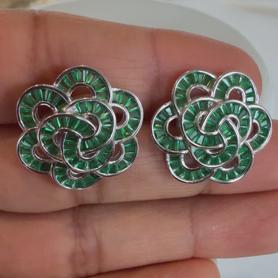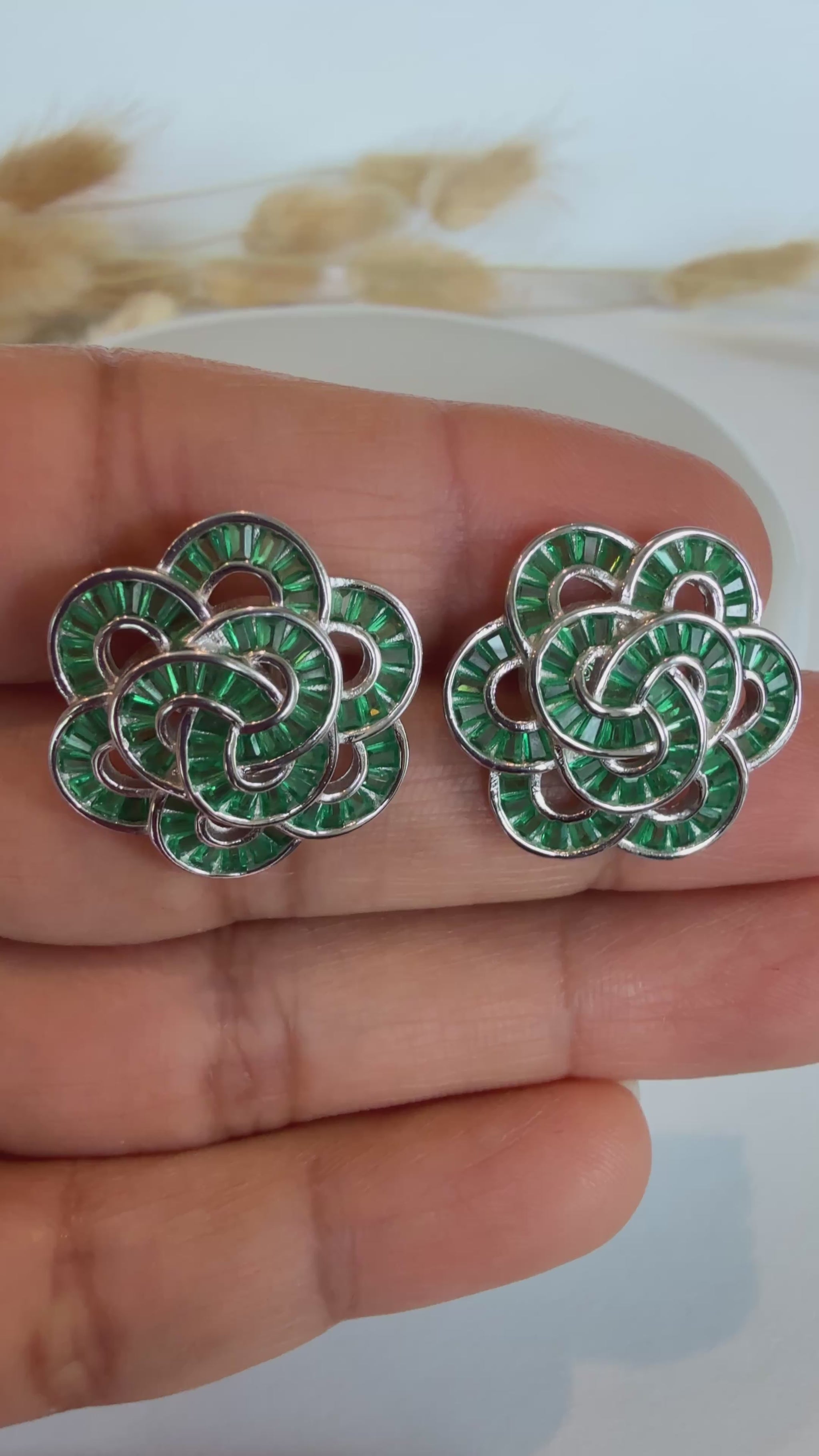 Agrega un toque de color a tu vestuario con nuestros hermosos aritos en forma de flor. Hechos de plata925, cuentan con Zircones verdes que le dan un toque de elegancia. Con su práctico sistema de pin y mariposa, son perfectos para cualquier ocasión. ¡Haz que tus oídos brillen con estilo!