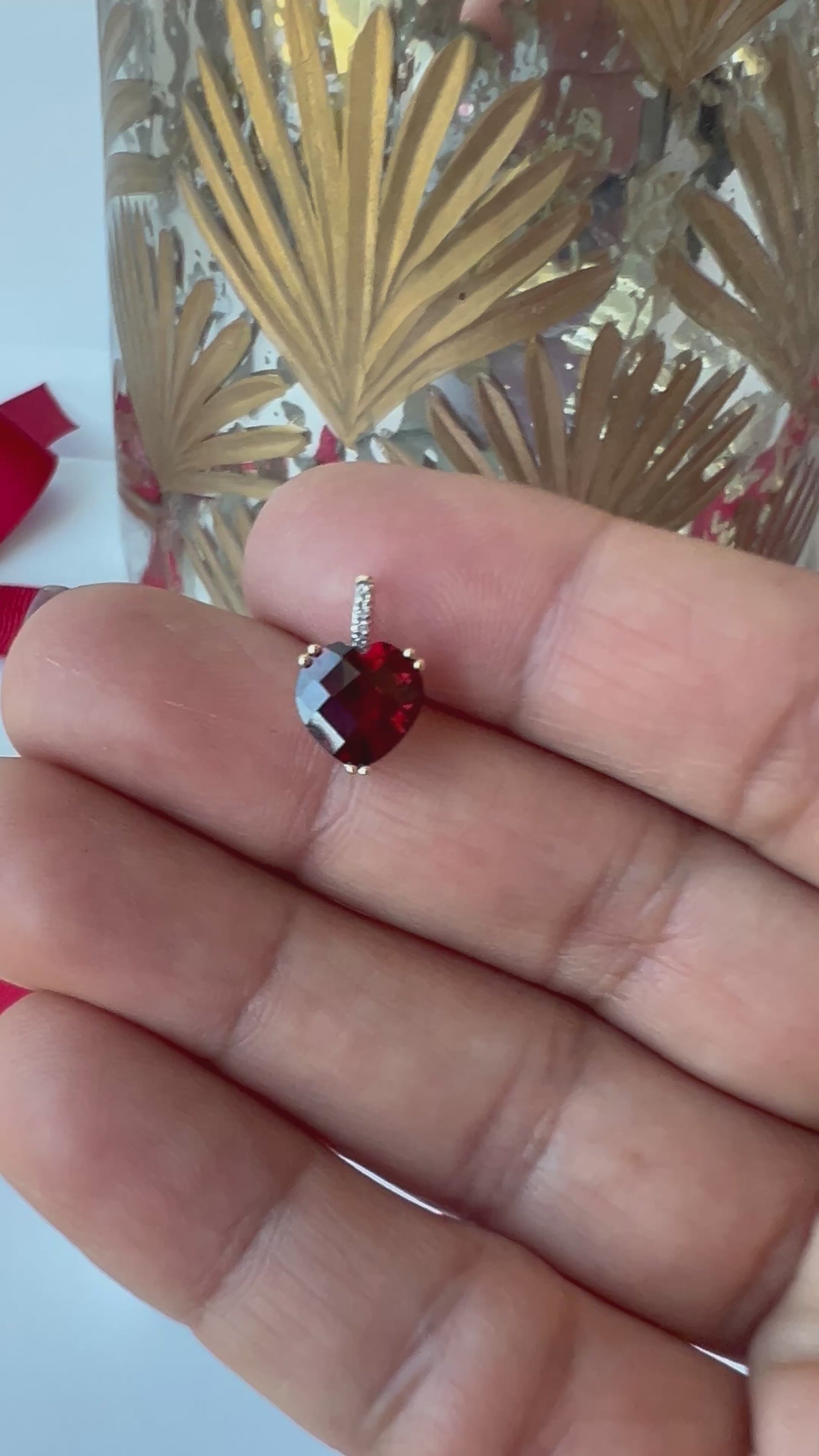 Dije de Corazón en Oro de 14k, Granate y Diamantitos Naturales
