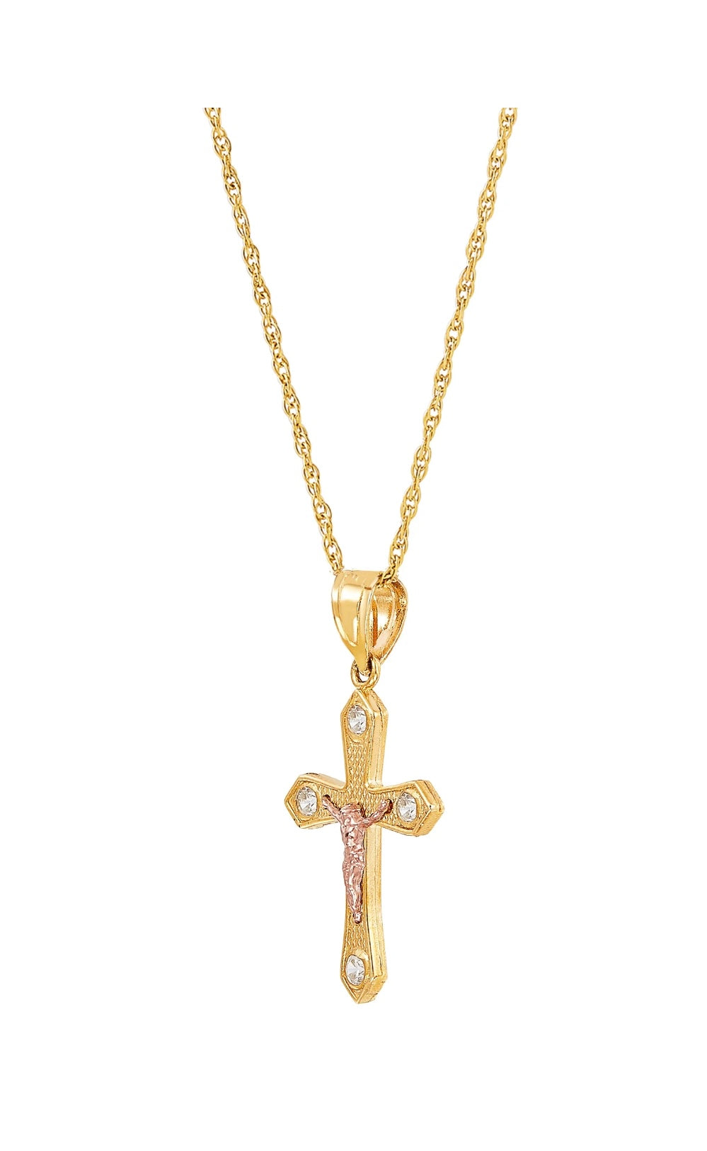 Dije en Oro de 10k, Crucifijo oro amarillo y rosado con Zircones