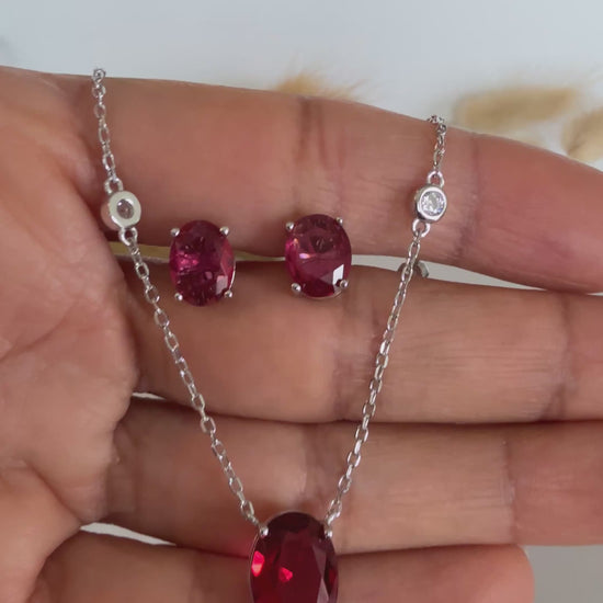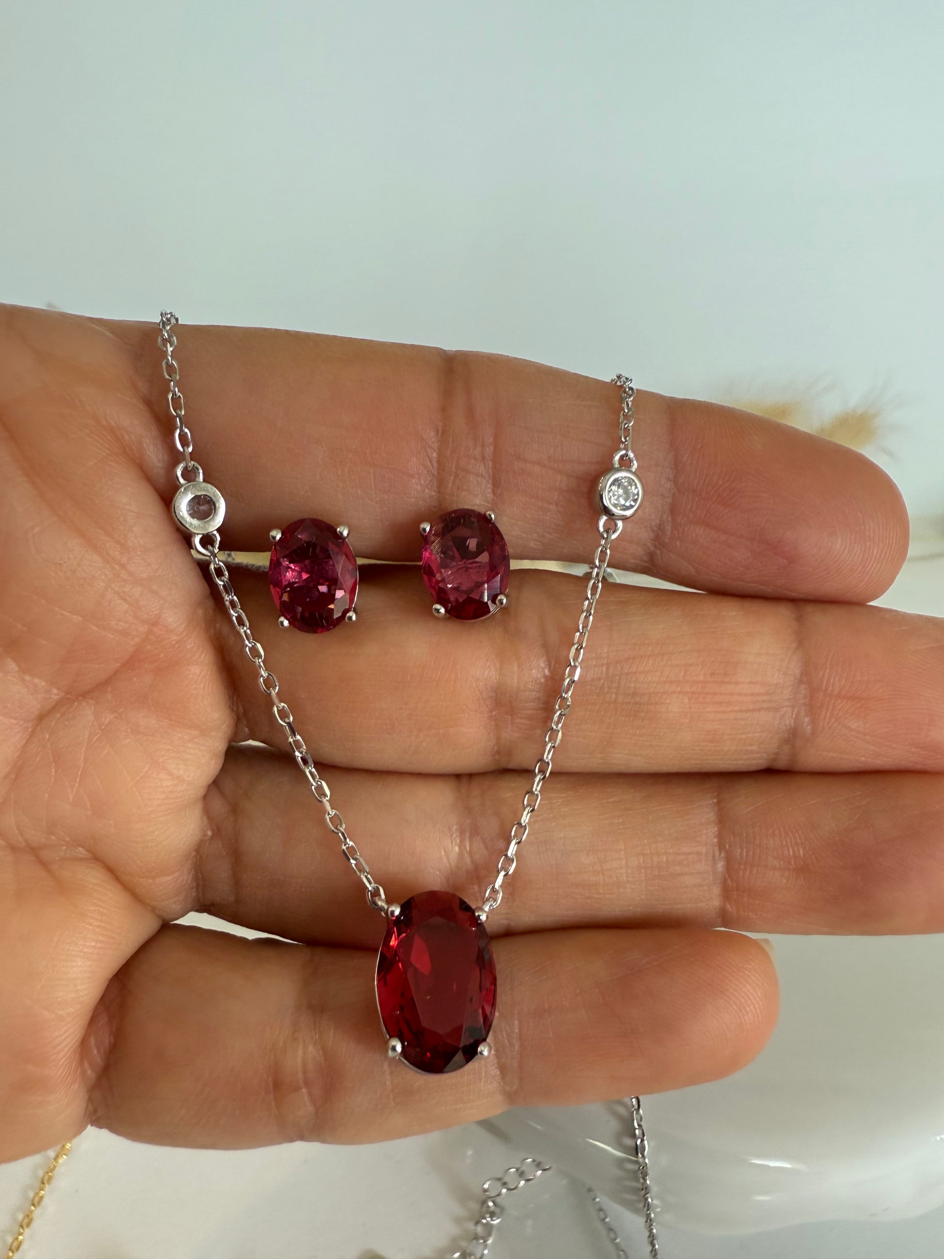 ¡Agrega vida a tu vestuario casual con el Juego de Aritos y Cadena en Plata925! Con su diseño de circones rojos, le dará un toque de elegancia y color a cualquier conjunto. Además, su material de alta calidad asegura durabilidad y brillo duradero. ¡No puede faltar en tu colección!