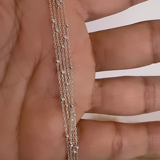 Pulsera PLata925 con 5 Cadenitas y Pelotitas