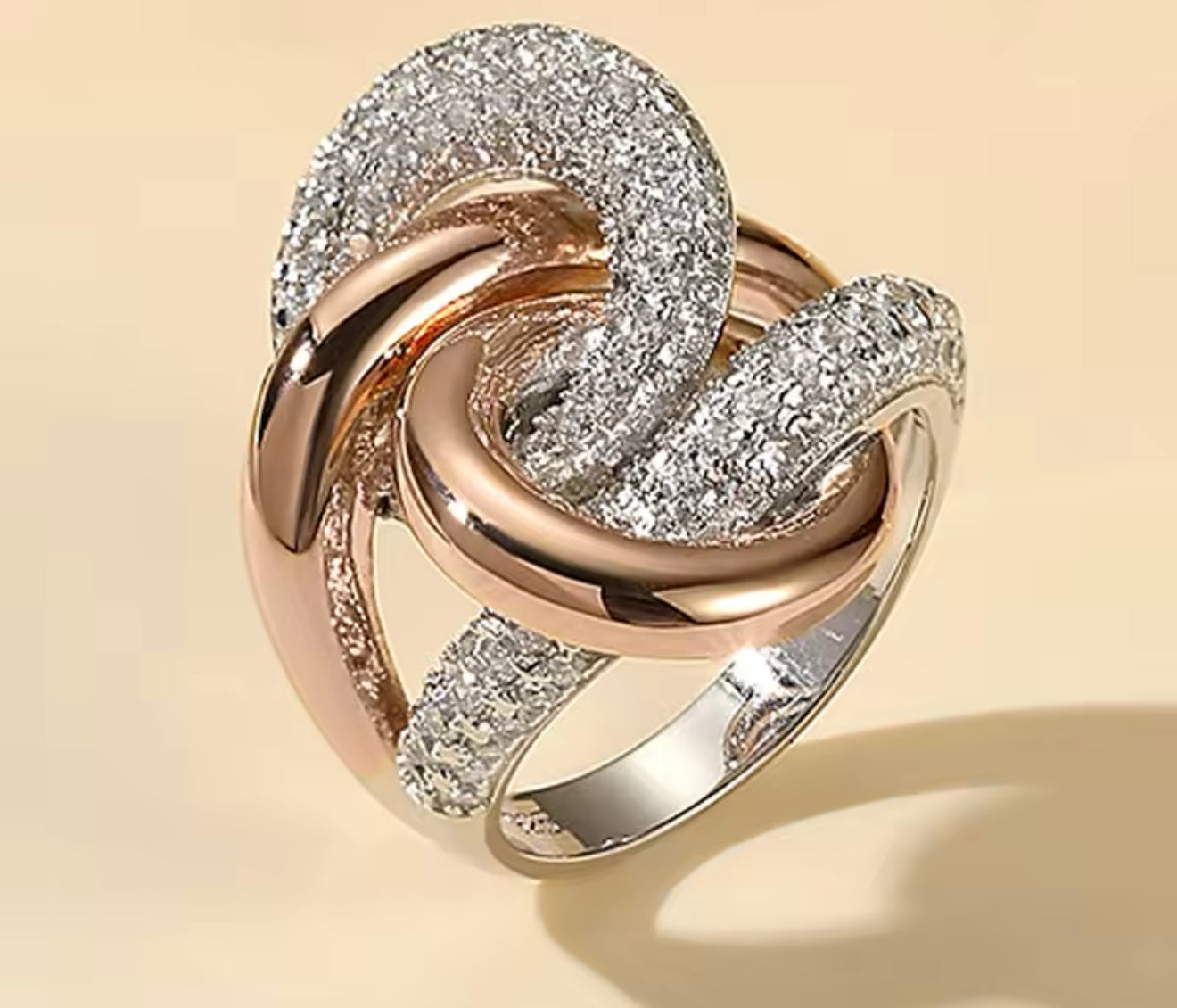 Este hermoso anillo de doble tono entrelazado está diseñado con elegancia y estilo en mente. Hecho de plata 925 con un baño de oro rosado y zircones micropavé, este anillo es perfecto para agregar un toque de sofisticación a cualquier atuendo. Con su diseño único y de alta calidad, este anillo es la elección ideal para cualquier persona que aprecie la belleza y la calidad.